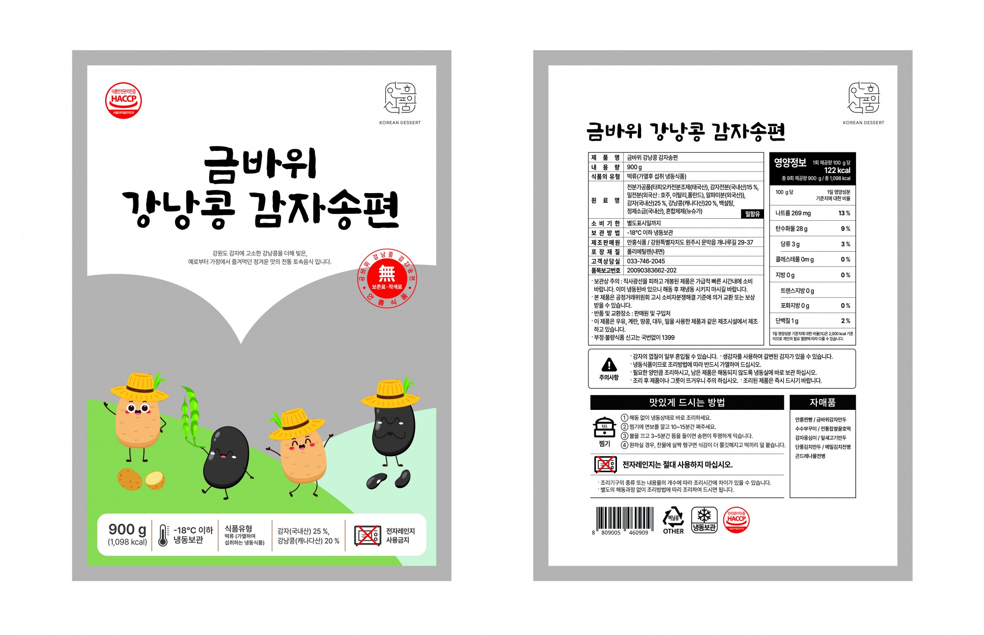 주요성분: 전분가공품[변성전분{타피오카전분조제품(태국산)60%, 감자전분(국내산)15%, 밀전분(외국산:호주,이탈리아,폴 란드) 25%, 알파미분(외국산)}]75.97%, 강낭콩(중국 산)16.7%, 백설탕6.96%, 정제소금(국내산), 혼합제제 (뉴슈가) |