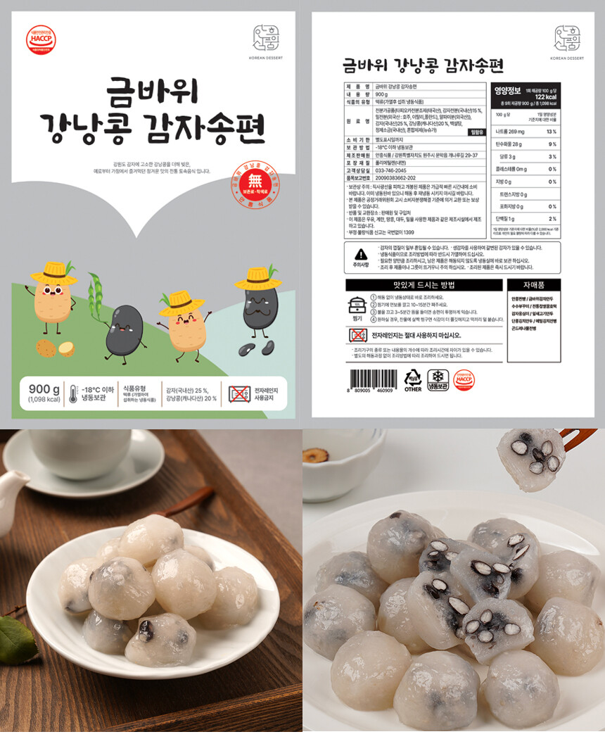 주요성분::감자떡가루{감자가루15%(국산),타피오카(태국 산),소맥전분(밀.미국산),말소덱스트린,섬유소,구아 껌,옥분,수수(수입산),팥(중국산),설탕,소금,정제수 |